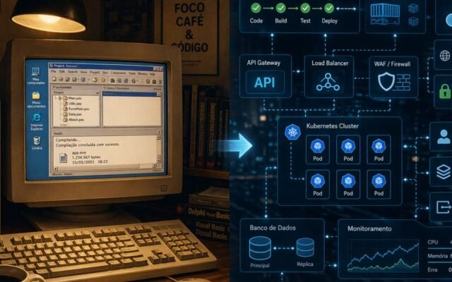 Durante muito tempo, colocar um sistema no ar parecia quase um ritual secreto. Na máquina do desenvolvedor funcionava. No servidor, não. Em homologação, dava erro. Em produção, surgia um comportamento estranho que ninguém sabia explicar direito. Era o velho fantasma do “na minha máquina roda”.